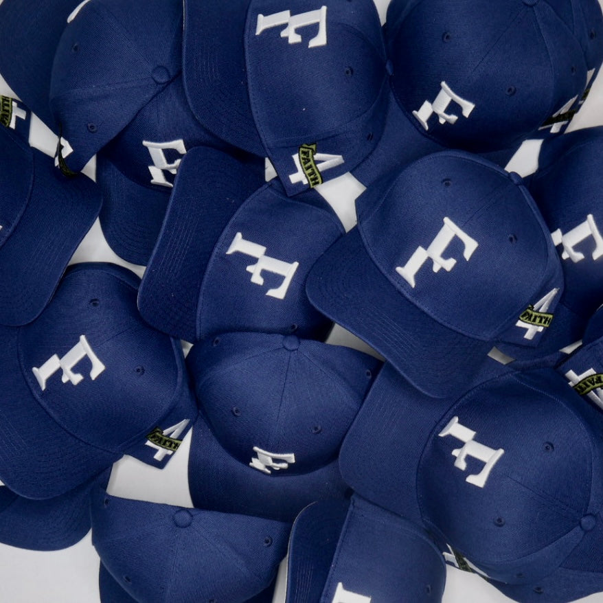 Printed canvas snapback with signature premium embroidery. Classic grey suede under brim and custom Faith+ tape.